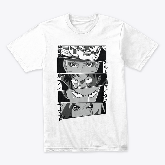 Camiseta Algodon The Masters Of Anime Goku, Naruto, One Piece, One punch Man